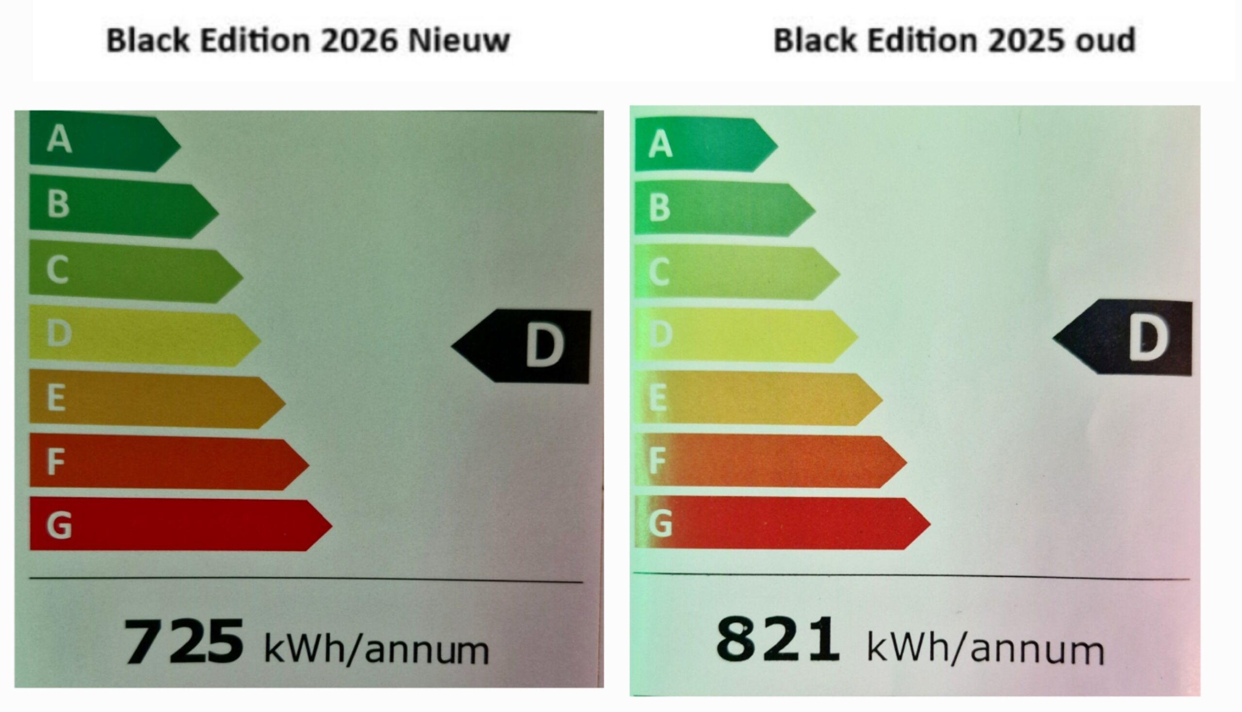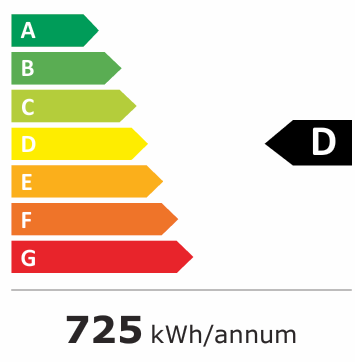 Energieverbruik per jaar 671,6 Kw-h oude model gebruikte 725 Kw-h per jaar. (nieuwe label nog niet beschikbaar)