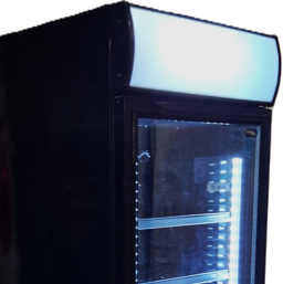 Zwarte 1-deurs displaykoeler met canopy model 2026