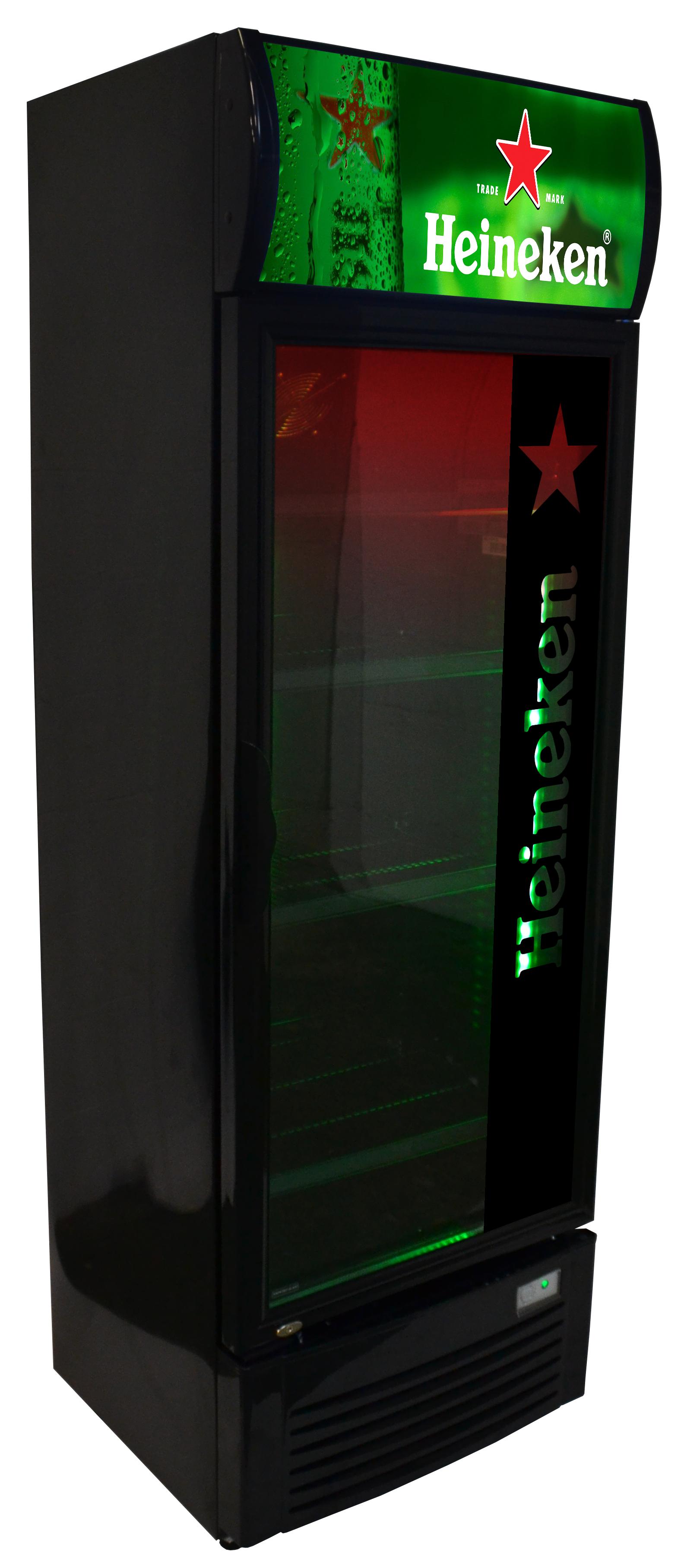De allernieuwste ”BlackLine+ XXL” snelkoeler model 2026 met logo in de lichtbak, logo op de deur en gekleurde binnenverlichting.