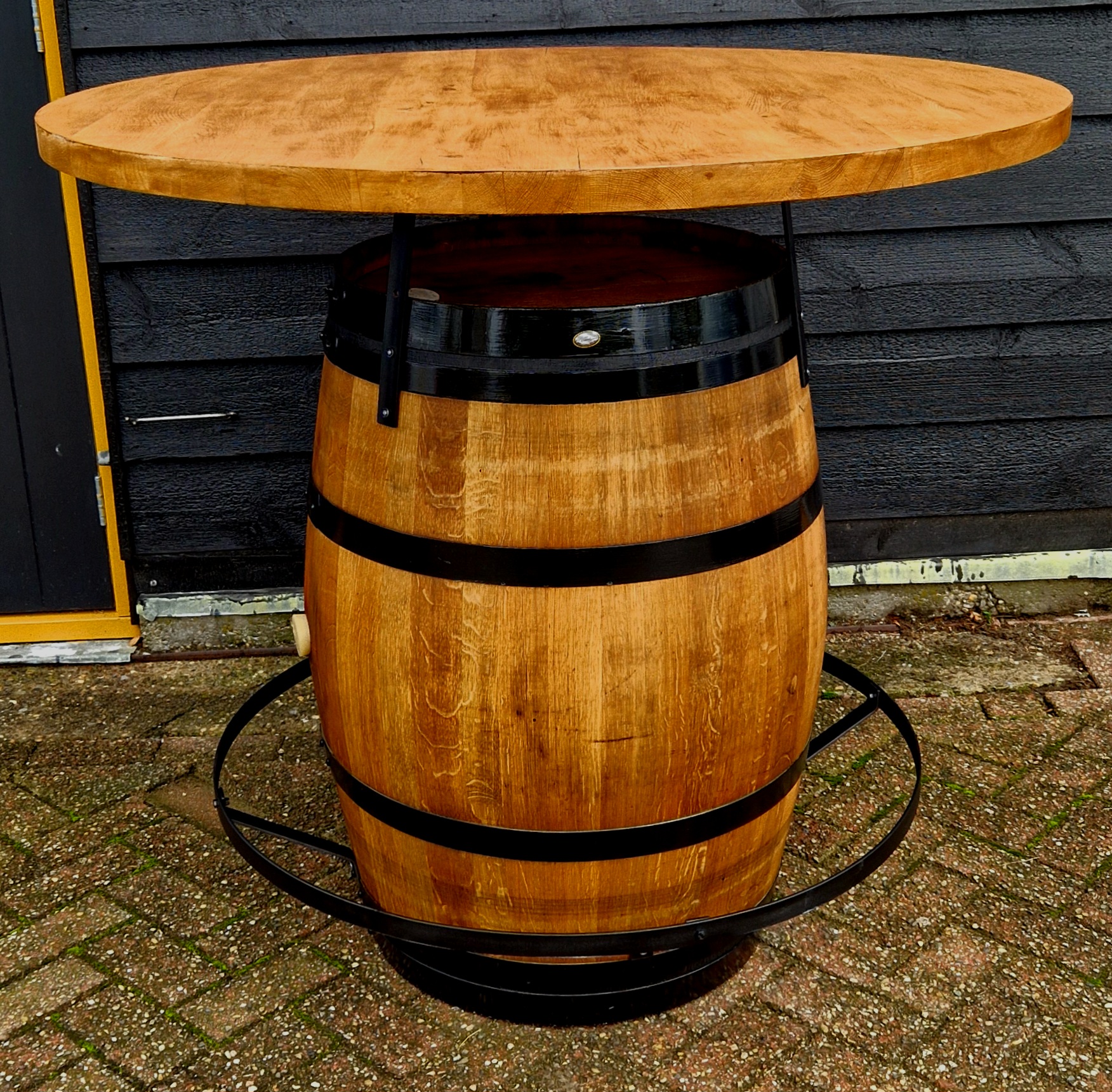 Bij het bezorgen van uw tontafel zit het blad en voetsteun altijd los, u dient dan ook zelf even het blad en de voetsteun op de ton te bevestigen met de bijgeleverde schroeven.