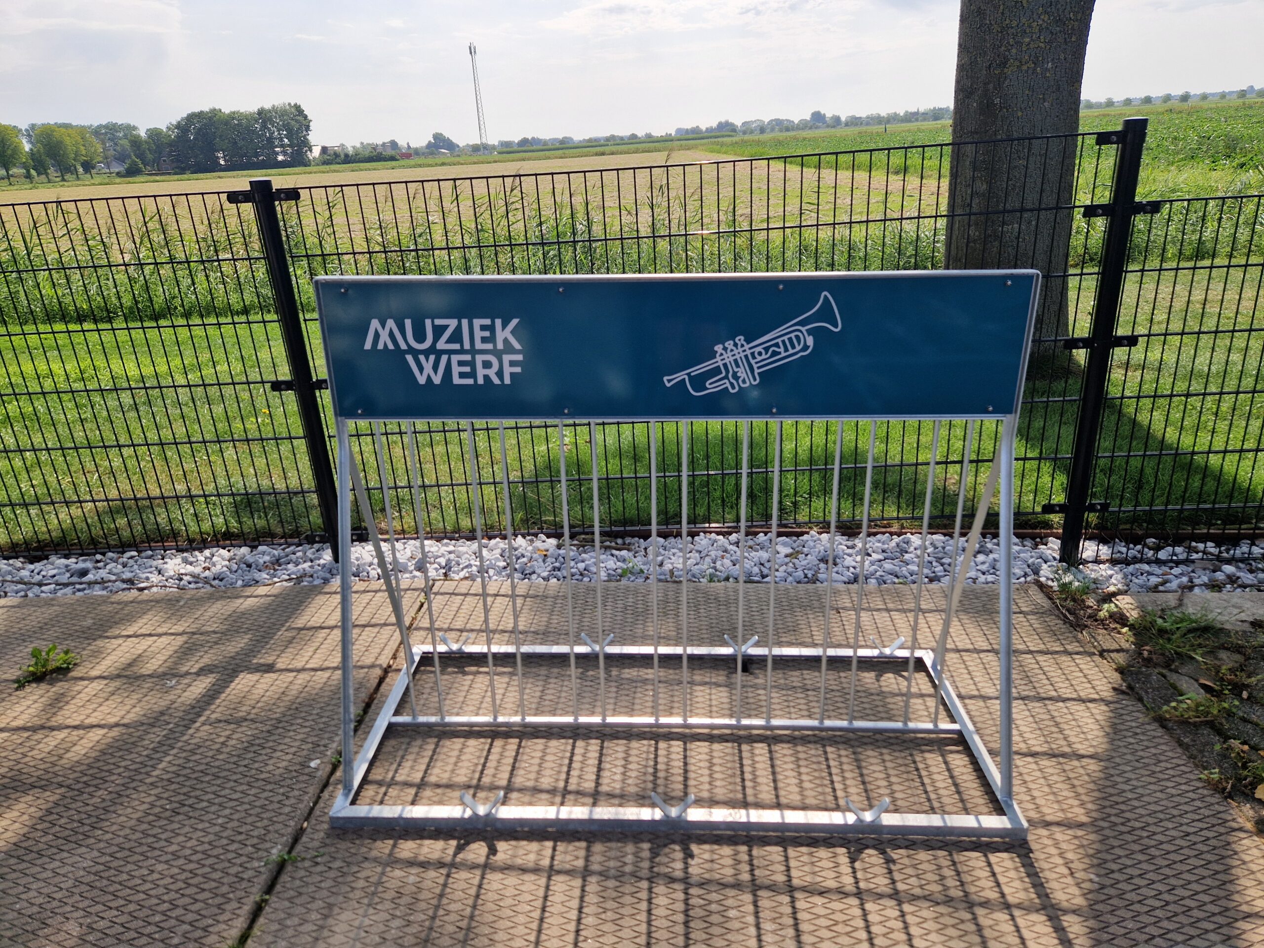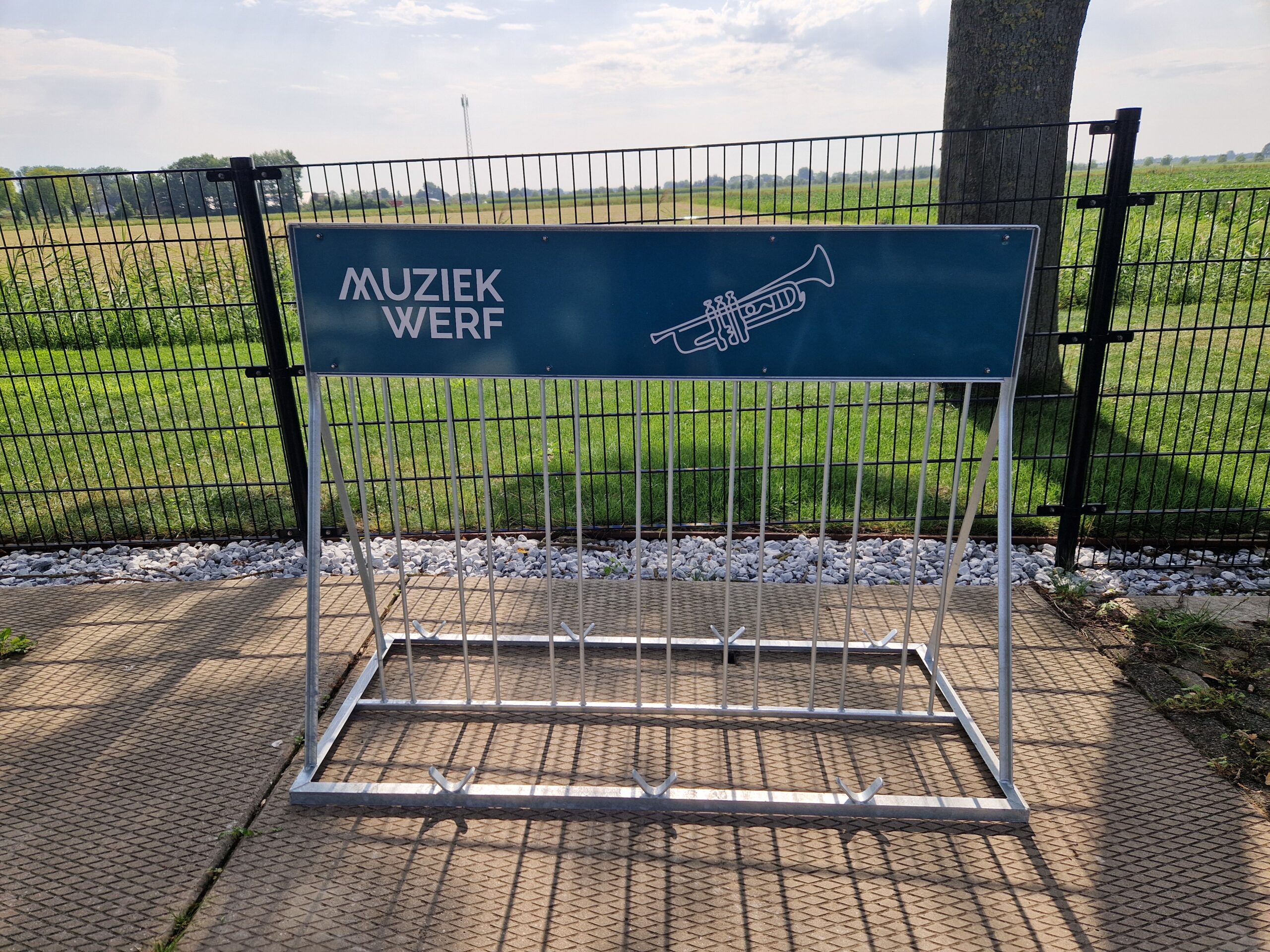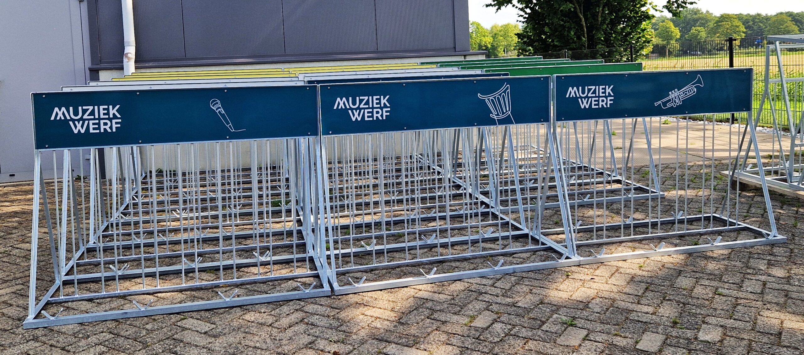 MUZIEK WERF MUZIEK WERF fietsenrek met reclame. Categorieën: Fietsenrekken, Referenties fietsenrek met reclame Gerelateerde producten Fietsenrek type ”Dussen” met eigen reclame€ 535,00 Toevoegen aan winkelwagen OranjeBoom Bier Lees meer Juliana Toren Lees meer